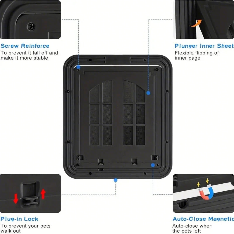 Grâce à son système de fermeture magnétique automatique, la trappe se referme seule après chaque passage. Ce mécanisme pratique permet de conserver une bonne isolation tout en empêchant l’entrée d’insectes ou d’éléments extérieurs indésirables.