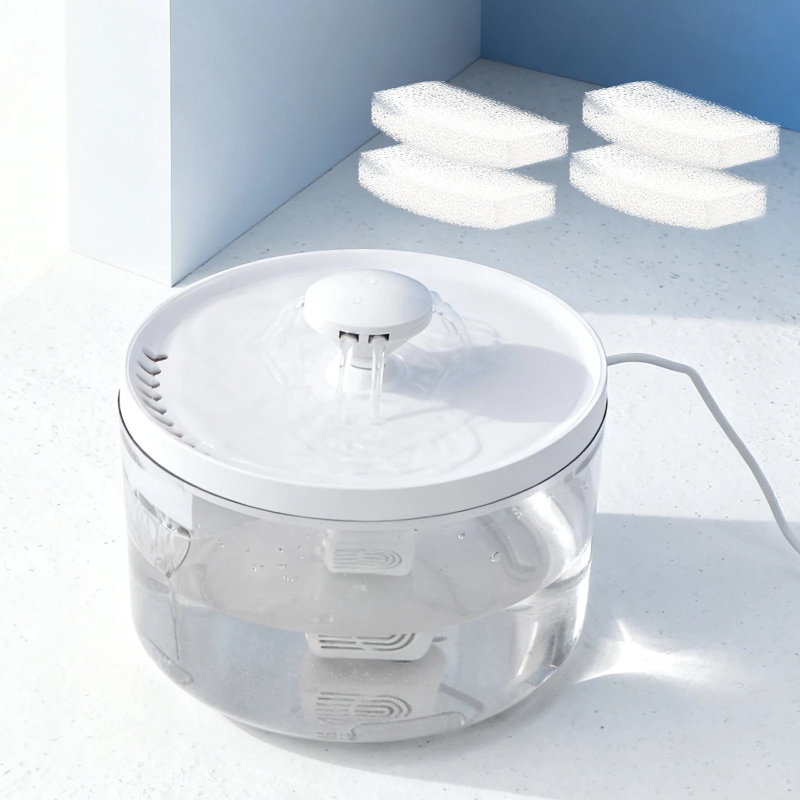 Fontaine à eau blanche pour animaux, design moderne, avec filtre, eau fraîche et propre.