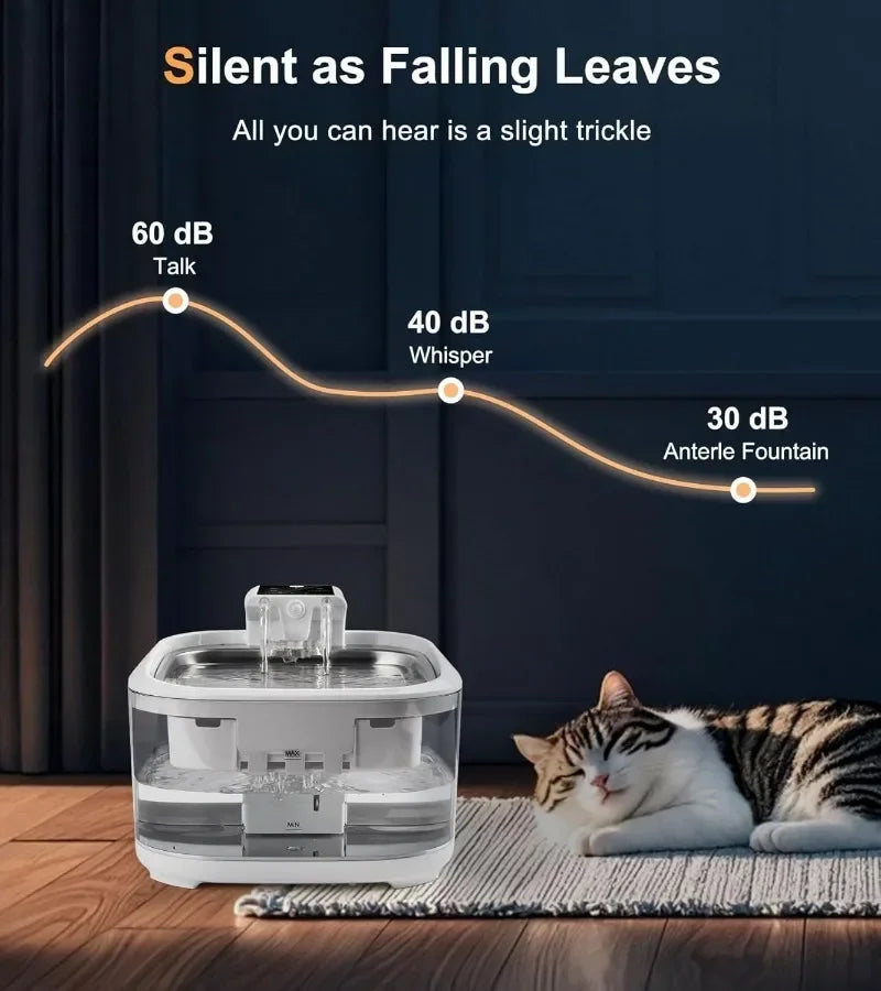 Avec un niveau sonore inférieur à 30 dB, cette fontaine est particulièrement discrète. Elle peut fonctionner jour et nuit sans perturber votre environnement ni votre sommeil.