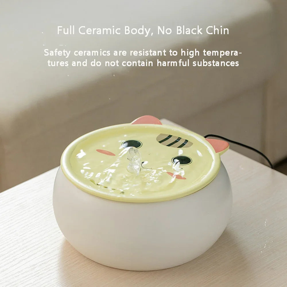 Fontaine à eau pour chat en céramique 1.8L avec circulation continue et design adorable